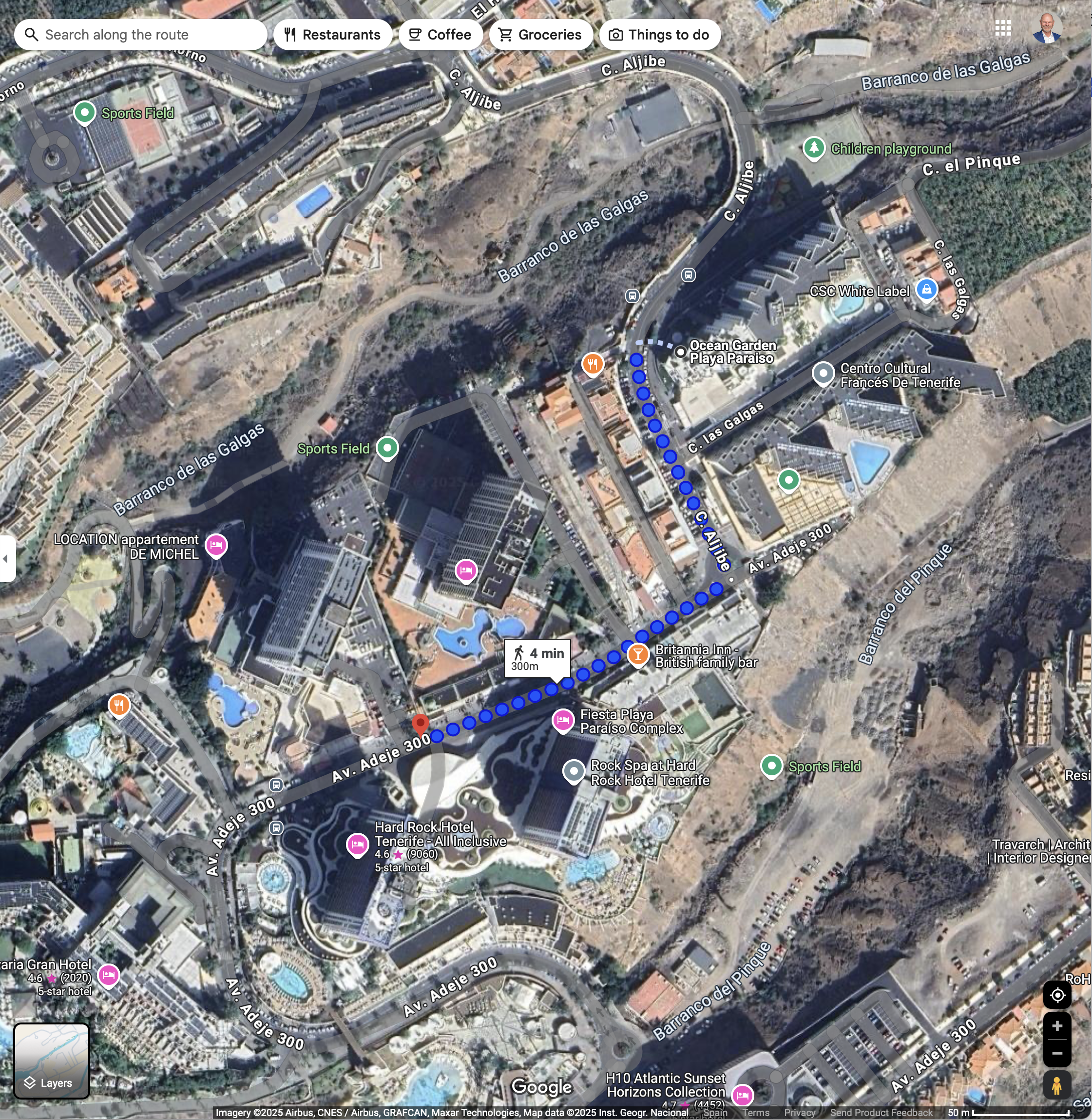 Si vous avez besoin d'un taxi à l'appartement, vous pouvez appeler Taxi Adeje Central au +34 922 979 293 ou bien, marcher 300 mètres dans la rue jusqu'à l'arrêt de taxi devant l'hôtel Hard Rock.